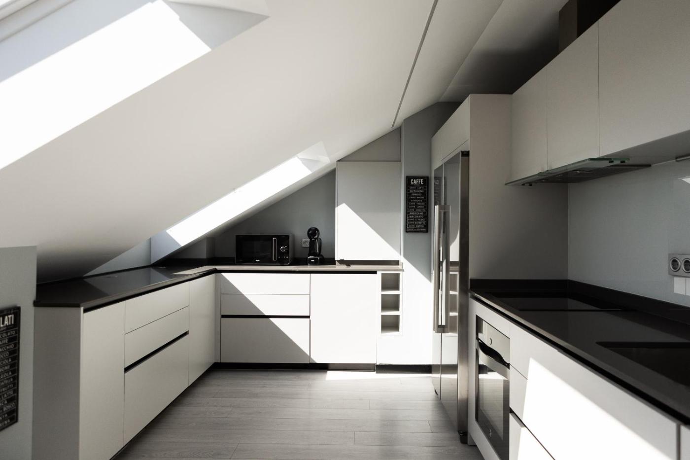 Apartamento Deluxe. Esta habitación doble cuenta con baño privado con artículos de aseo gratuitos, ducha y secador de pelo. La cocina está equipada con fogón, nevera, utensilios y microondas. La habitación doble es amplia y tiene aire acondicionado, TV de pantalla plana, lavadora, entrada privada, paredes insonorizadas y vistas a la ciudad. La unidad dispone de 3 camas.